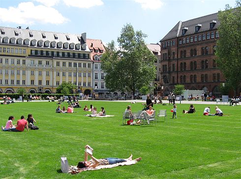 В северо-восточной части площади находится Фишбруннен – фонтан, который служит точкой встречи и особенно привлекающий туристов в летнее время. Говорят, что опустив в его воду кошелек, можно привлечь богатство и удачу. По-крайней мере, именно этой традиции придерживается мэр Мюнхена, ежегодно окуная в фонтан портмоне бюджета города.