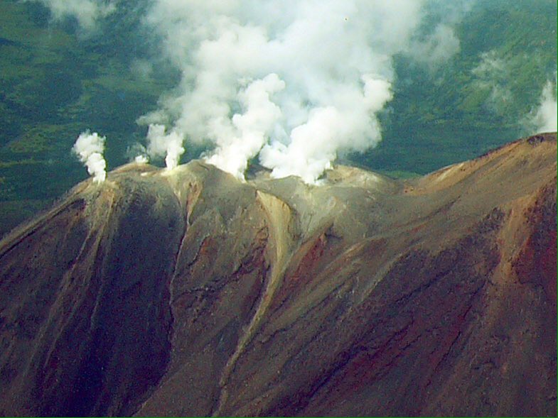 Вулкан Итуруп на острове Итуруп. Мы потратили большую часть дня, исследуя этот впечатляющий остров с его озерами, кальдерами и массивными щитовыми вулканами. Здесь мы увидели удивительное разнообразие цветочных сообществ, в том числе субтропические Курильские бамбуковые леса, а также смешанные леса Сахалинской Серебряной Пихты и Каменной березы.