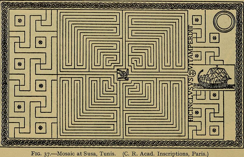 Самый древний известный лабиринт — Критский лабиринт. Семь колец путей легко создать, нарисовав крест и четыре точки, а затем, объединить их, чтобы сформировались восемь кругов с одним и тем же центром, в результате чего между ними образуются семь пустых колец. Это захватывающая фигура, которая впечатляет уже всё человечество 5000 лет и оставила в истории цивилизации.
