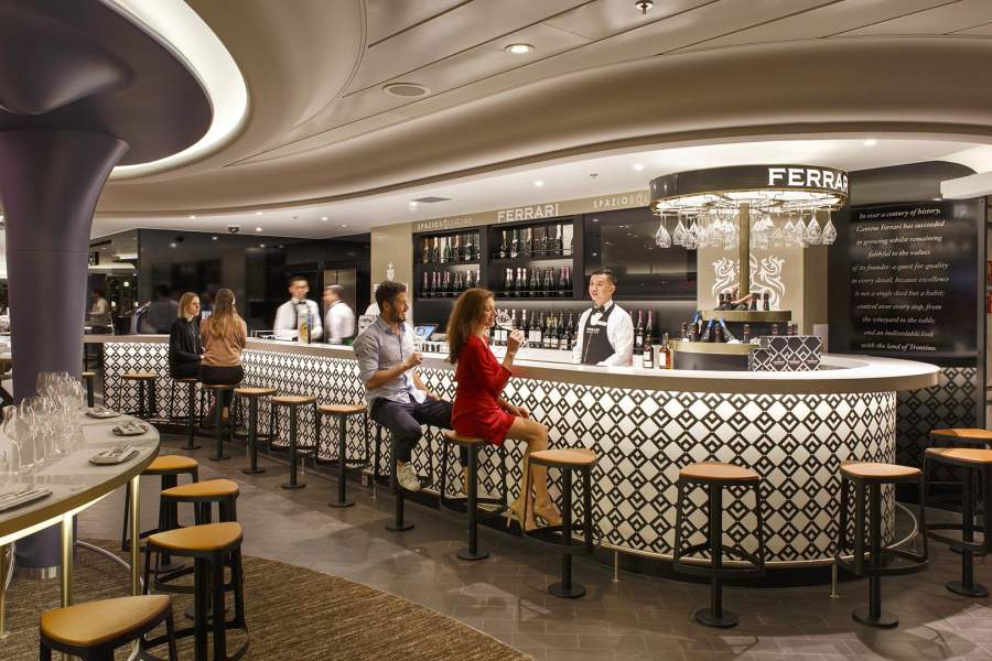 На борту – 15 ресторанов и 17 баров. Буфет со шведским столом La Sagra dei Sapori расположен на 8-й палубе. Он, как и четыре ресторана (La Colombina, Arlecchino, Il Meneghino и Il Rugantino), включен в стоимость круиза. Во время круиза туристы смогут попробовать типичные блюда городов, в которых останавливается лайнер. Кстати, из напитков в ресторанах на ужин включена в стоимость только вода.