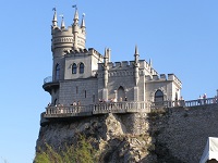 На краю 40-метровой Аврориной скалы, между морем и небом стоит миниатюрный замок «Ласточкино гнездо». Его зубчатые стены со стрельчатыми окнами уступами поднимаются к круглой трехъярусной башне со шпилями. Это символ Южного берега Крыма, памятник архитектуры и истории, с которого открывается запоминающийся вид на Аю-даг и Ялтинскую бухту.