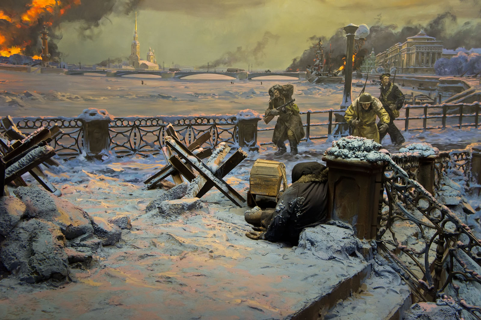 Жертвами организованного фашистами голода стали более 650 тыс. жителей. Несмотря на голод и непрерывные артиллерийские обстрелы врага, ленинградцы сумели выстоять и продолжить героическое сопротивление.Важными фактами в истории военной летописи города на Неве стали следующие цифры: более 500 тыс. ленинградцев выходили на работы по строительству оборонительных сооружений; ими были построены 35 км баррикад и противотанковых рвов, а также более 4 тыс. дзотов и дотов; оборудовано 22 тыс. огневых точек. Ценой собственного здоровья и жизни мужественные ленинградцы изготовили для фронта тысячи полевых и морских орудий, отремонтировали и выпустили с конвейера 2 тыс. танков, изготовили 10 млн снарядов и мин, 225 тыс. автоматов и 12 тыс. миномётов.