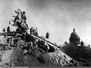 Зенитный расчёт ведёт огонь по противнику на улицах блокадного Ленинграда.