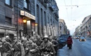 Военный парад в Санкт-Петербурге начался минутой молчания в память о погибших во время блокады, так как выпал снег и температура колебалась около минус 18 градусов по Цельсию.