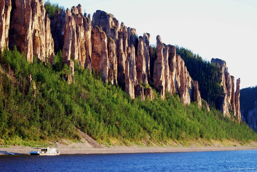 Высоченные скалы, абсолютно сплошной стеной тянущиеся вдоль правого берега Лены на четыре десятка километров. Одним они напоминают стены огромного средневекового замка, другие вспоминают о клыках дракона, третьим кажется, что перед ними навсегда застыли каменные великаны.