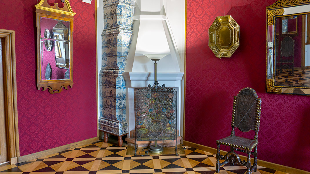 На втором этаже стоит данцигский шкаф, в котором, по преданию, Петр I хранил свое белье и ботфорты.