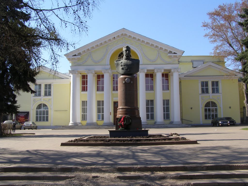 В городе Великие Луки родился прославленный советский полководец Константин Рокоссовский. Здесь 1 июля 1945 года в центре, на Театральной площади, по решению Президиума Верховного Совета СССР, и был установлен памятный бюст маршалу.