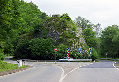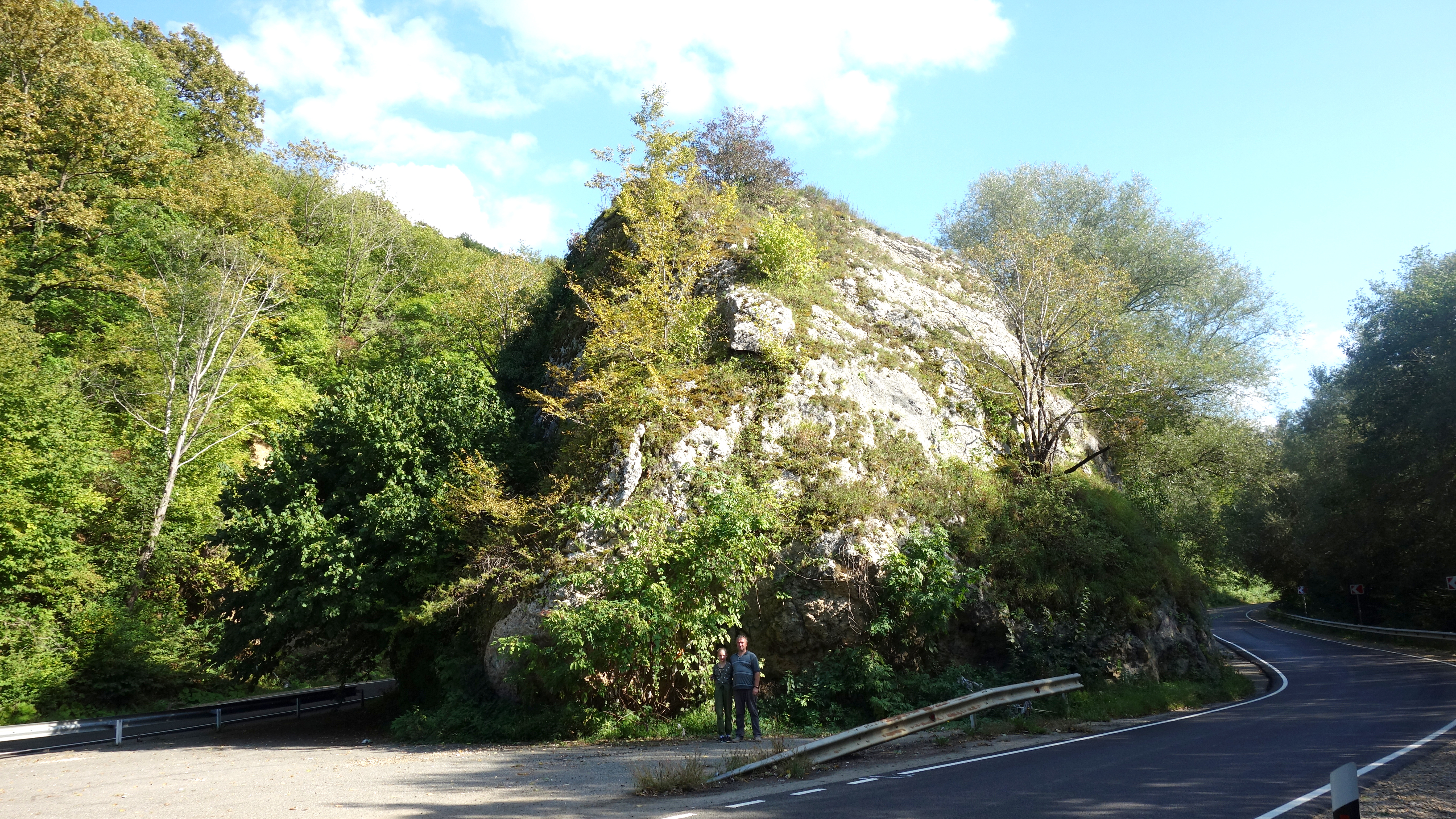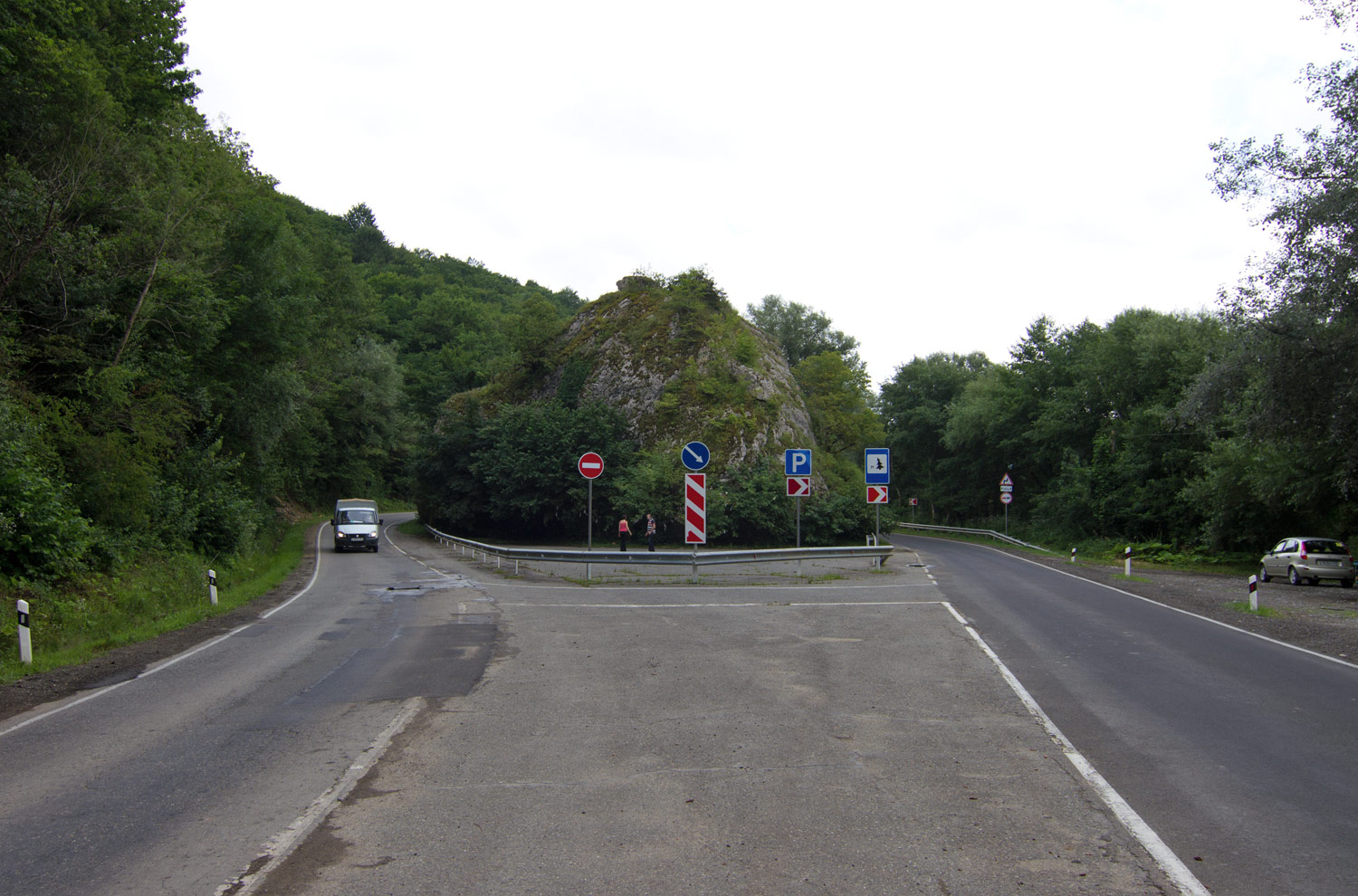 Два направления автодороги огибают глыбу, словно речные потоки – остров посреди реки. И на этом островке безопасности находится смотровая площадка с местом для парковки.