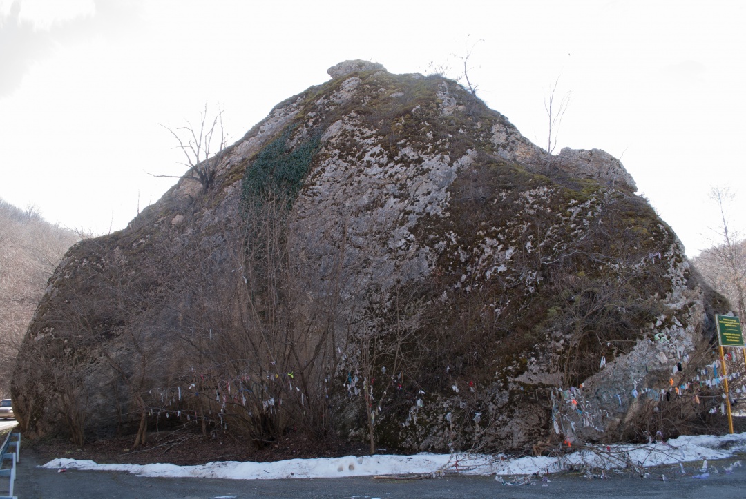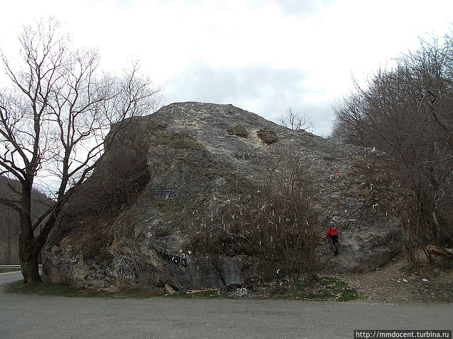 Когда мы ездили по дорогам этой прекрасной горной республики, встретился нам необычный валун.
