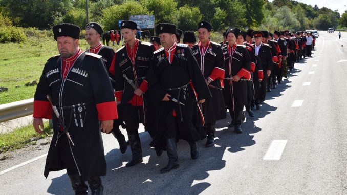 В долине реки Белая, между поселком Каменномостский и станицей Даховская, в центре дороги расположилась каменная глыба гигантских размеров – Казачий камень (Адыгея).
