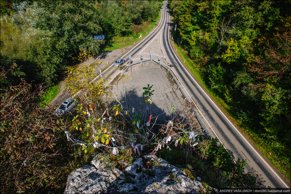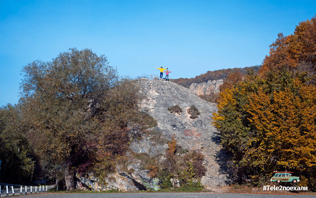Выгодное месторасположение этой достопримечательности Адыгеи прямо на дороге, по которой каждый день проезжают десятки сотен туристов, способствовало полёту фантазии…