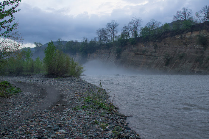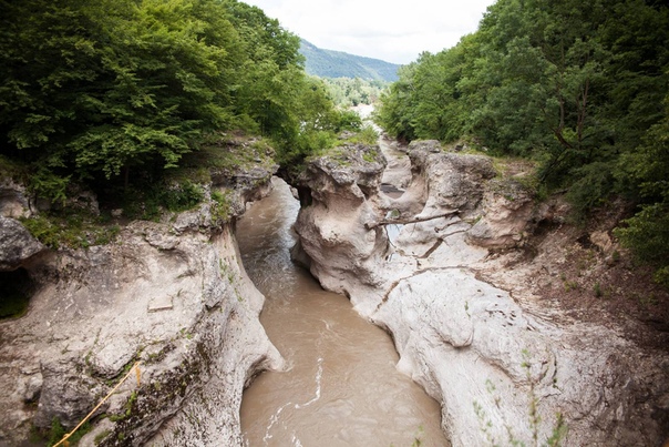 Хаджохская теснина в уже знакомом нам поселке Каменномостский — это узкий и извилистый каньон Белой, самой мощной реки в республике. Любители горных сплавов приезжают сюда во время паводка, когда уровень воды поднимается, а течение получает бешеную скорость. Недаром одна из грозных достопримечательностей этого места — площадка для казней, с которой в бурлящий поток сбрасывали приговоренных к смерти.