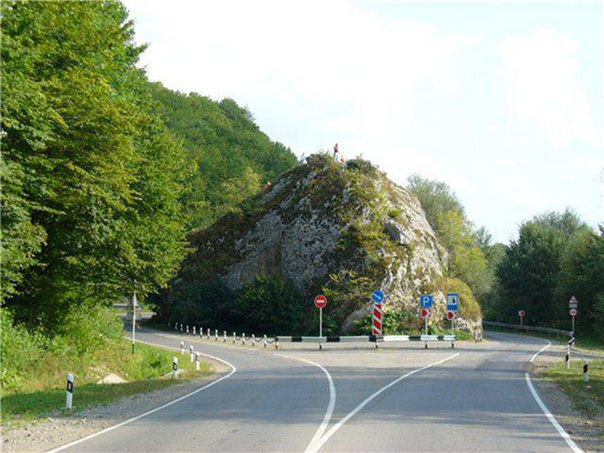 Впрочем, такой валун интересен и сам по себе, безо всяких легенд. Очень уж он живописно лежит прямо на дороге. Как будто камень из старой русской былины. Вперёд пойдёшь – в Даховскую придёшь, назад пойдёшь – в Каменномостский попадёшь, направо свернёшь – на Лагонаки придёшь, прямо пойдёшь – на скалу взойдёшь…