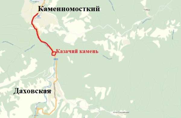 Казачий камень лежит посередине меж Каменномостским и Даховской