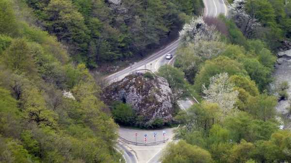 Адыгея богата на природные достопримечательности. Одну из них даже искать не надо, и не заметить ее очень сложно. Это легендарный Казачий камень, расположившийся прямо посреди трассы, ведущей из Каменномостского в станицу Даховская.