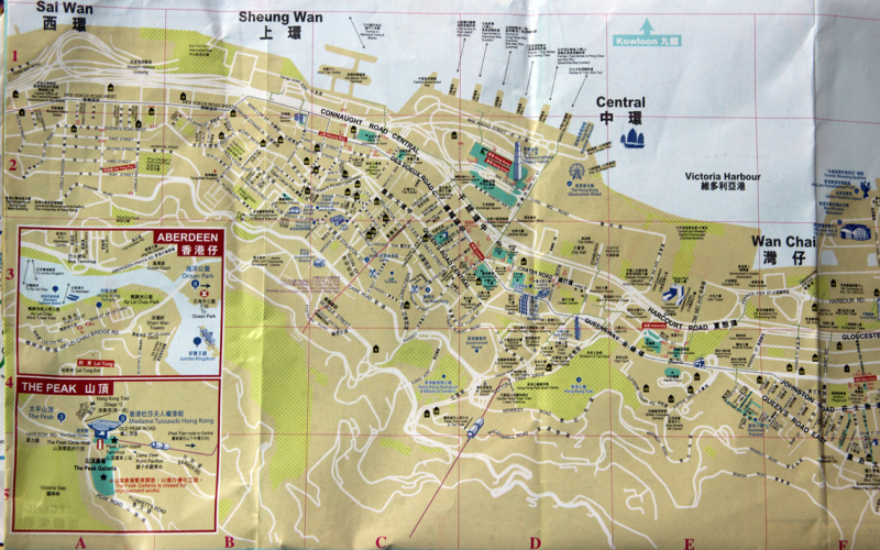 Трамвай «Пик » (автобус №15) доставит вас к пику Виктория (откуда открывается потрясающий вид на город). База находится на центральной станции метро или вы можете сесть на нее на пароме Star Ferry, стоимость: 9,80 гонконгских долларов) Купите карту осьминога