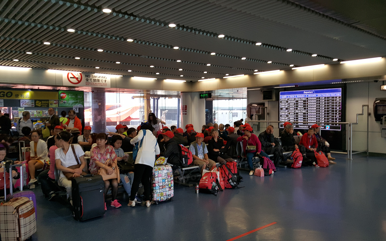 - Заходим в здание терминала. Проходим паспортный контроль там, где сидит человек за стойкой (местные идут через турникеты). Покидаем Гонконг. Штампы не ставят, бумажку оставляют на память.
