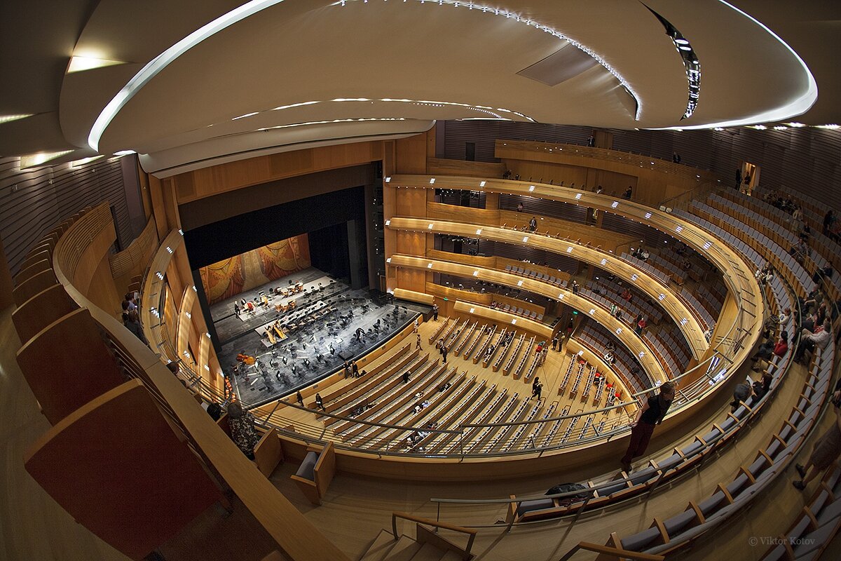 Хотя это современный зрительный зал, в его основе лежат те же принципы, что и в знаменитых оперных театрах XVIII и XIX века – изогнутая форма в виде подковы и три яруса балконов. Именно такая конфигурация обеспечивает уютную атмосферу, наилучшую акустику и прекрасный обзор, а значит, комфорт и удобство зрителей.