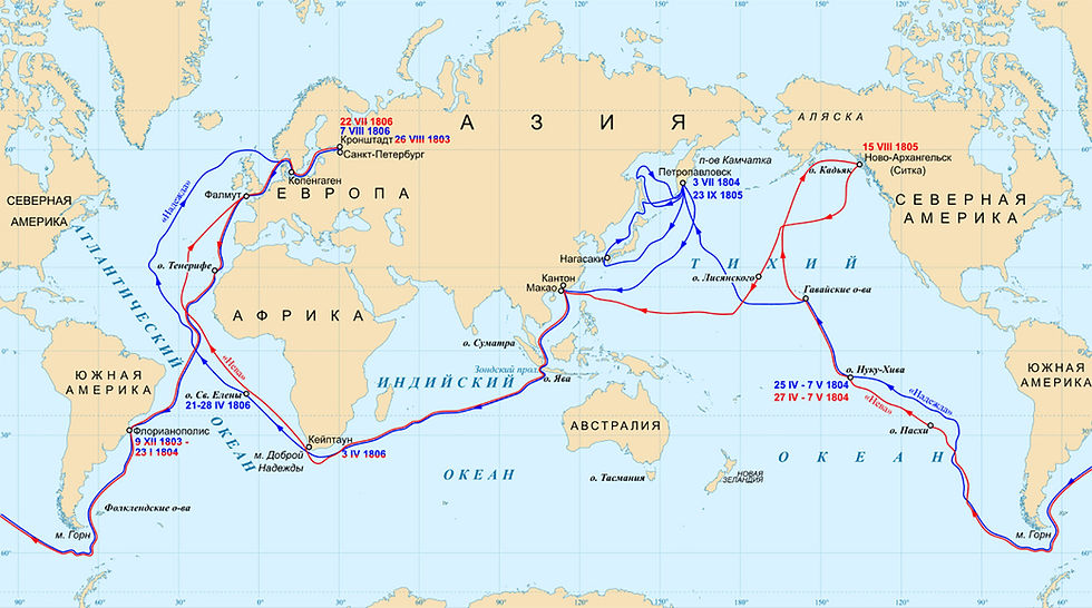 Рис. 2. Маршрут кругосветного плавания Фернана Магеллана.Вперед, через Тихий океан!