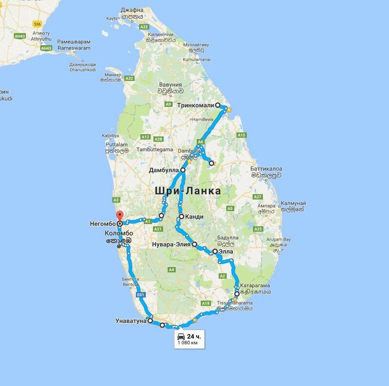 Эта поездка получилась достаточно сложной. Даже карта гугл не смогла проложить полностью наш путь. Такой готовый маршрут подойдет для людей, которые хотят увидеть Шри-Ланку во всём её разнообразии. Хоть Шри-Ланка на карте мира и кажется маленьким островом, но этот взгляд обманчив. Правильно говорится: карта — не территория.