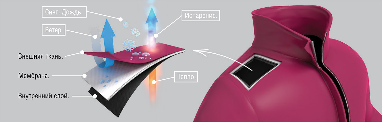 Этот вопрос хоть раз задавал себе каждый, кто сталкивался с необходимостью защиты от неблагоприятных погодных условий (сильного дождя, ветра и снега) во время длительного пребывания на открытом воздухе. Для туризма, путешествий и активного отдыха на природе очень важно ощущение комфорта в любую погоду при высоких физических нагрузках. Не все текстильные материалы способны решить проблему хорошего отведения испарений тела и одновременной защиты от внешней влаги. Мембранные материалы способны решить эту проблему.
