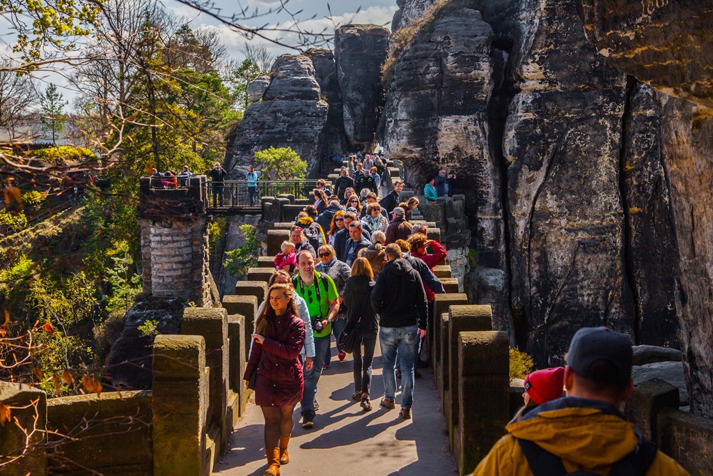 Туристы начали проявлять интерес к каменному бастиону в Саксонии в начале девятнадцатого века. Они съезжались небольшими группками, чтобы насладиться красотой высоких скал. Заметив пускай и небольшой наплыв туристов, местные жители начали открывать первые торговые лавки.