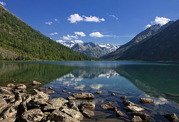 Мультинские озёра – группа высокогорных водоемов Катунского хребта.Верхнее и Поперечное озера охраняются Катунским Биосферным Заповедником. Самыми красивыми считаются Верхнее, Среднее и Нижнее, имеющие морено-подпрудное происхождения. Каскадно-расположенные на западе Катунского хребта связаны они рекой Мультой, берущей исток в Верхнем Мультинском водоеме, чью котловину глубокой сделали древние ледники. Они увлекали за собой, буду в движении, огромные каменные глыбы, морену, а когда все пришло в спокойствие – появилась запруда будущей Мульты. Так появились озера.