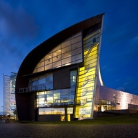 Внешний вид здания вполне соответствует его содержанию: стеклянный фасад и изогнутые стены смотрятся весьма футуристично.