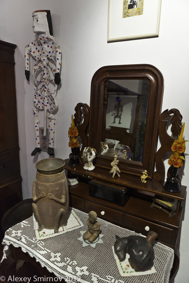 Алтарь Фриды. Мы потом видели мини-атлари Фриде с подношениями преимущественно текилы, что отражало воззрения Фриды.
