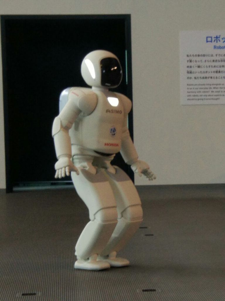 В Мирайкане вы встретите движущийся ASIMO , двуногий робот, разработанный и произведенный японской автомобильной компанией Honda . Для ASIMO ходьба и бег — простая задача.