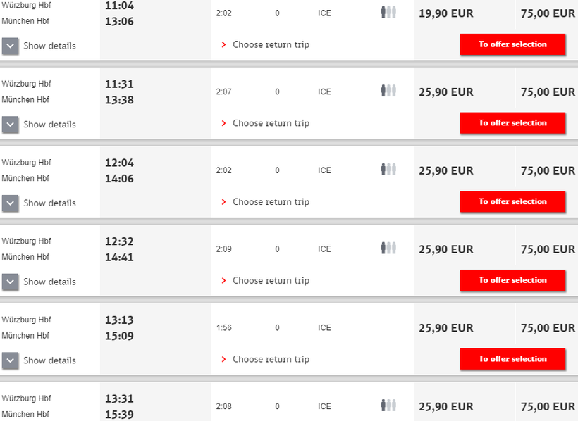 Цена вопроса скорее всего тоже не спровоцирует большого ажиотажа среди пассажиров. Без скидки BahnCard стоимость билета на поезд Берлин-Мюнхен во втором классе по новому маршруту увеличится на более чем 13 % — с 132 евро до 150 евро.