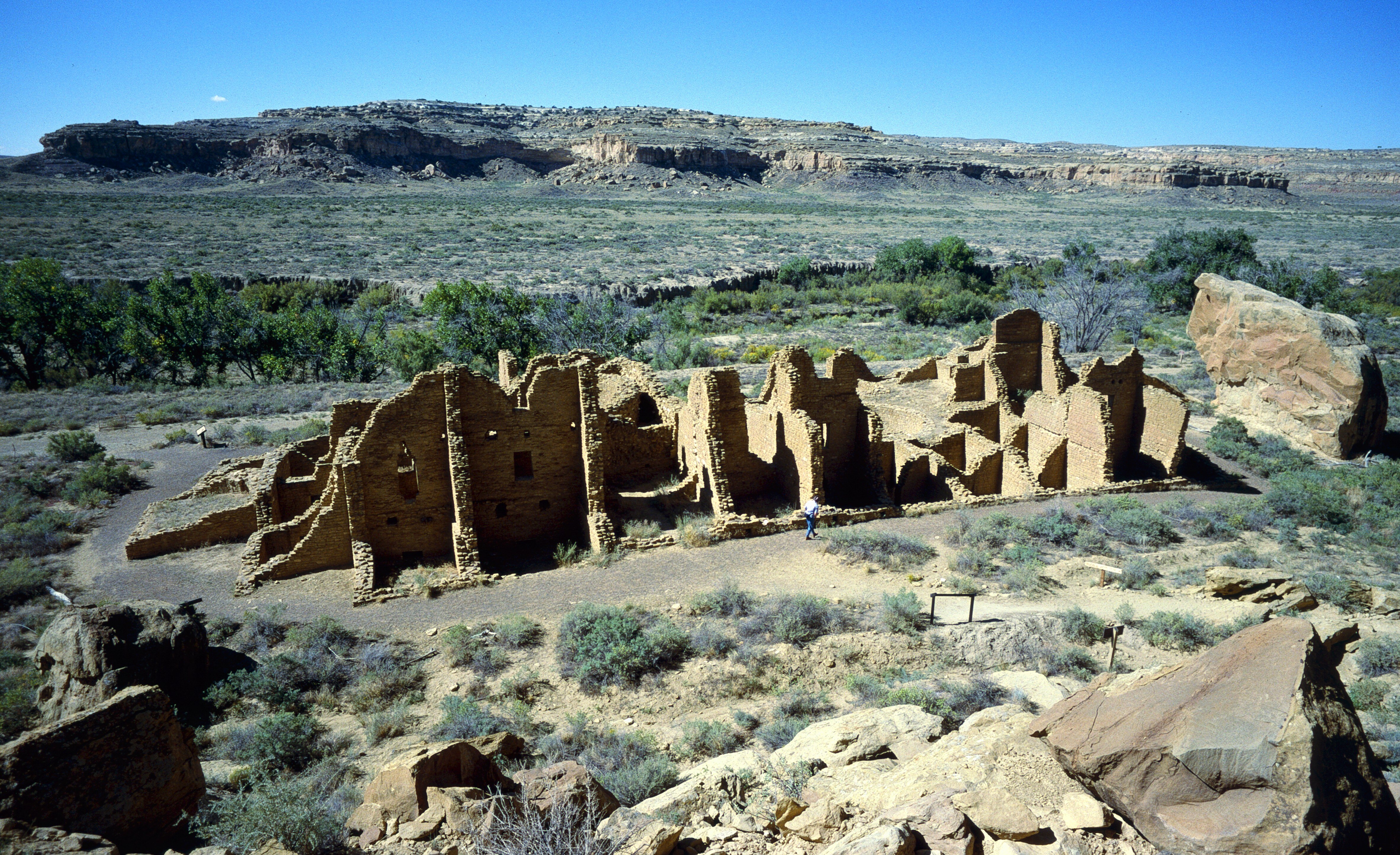 Национальный исторический парк культуры Чако, созданный в 1907 году, содержит концентрацию этих исконных построек пуэбло, заброшенных примерно в 1200 году нашей эры. ЮНЕСКО признала его объектом всемирного наследия в 1987 году за его «монументальные общественные и церемониальные здания и самобытную архитектуру — здесь есть древний городской церемониальный центр, который не похож ни на что, построенное до или после».