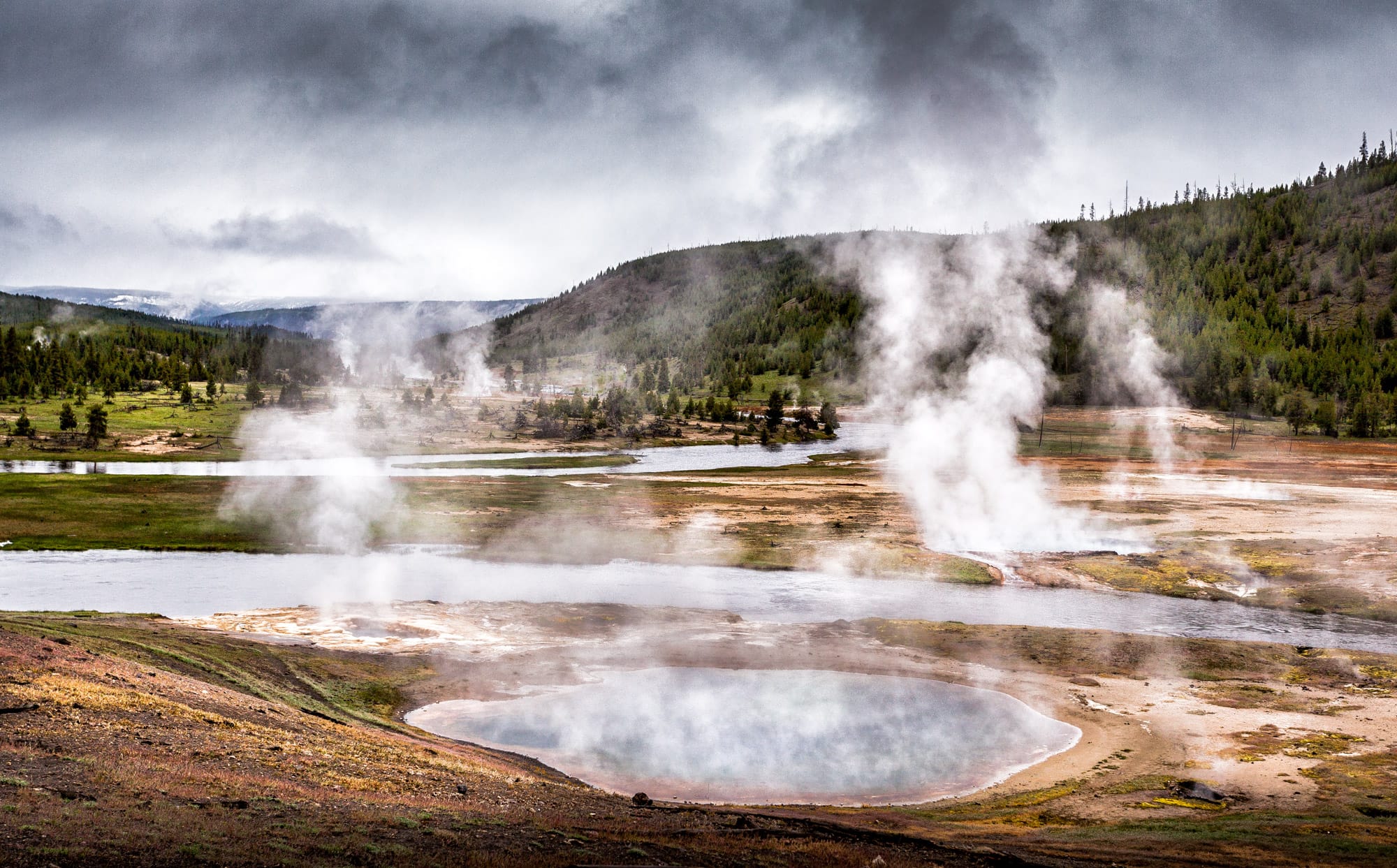 Всего в парке находится более половины всех геотермальных источников планеты, и довольно многие из них находятся по соседству с Олд-Фейтфул в небольшой долине под названием Верхний гейзеровый бассейн, протяженность которой всего 2 километра.