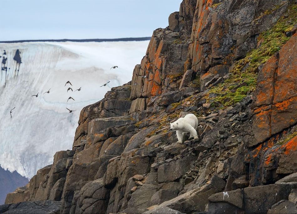 Лето 2013 года в Арктике сильно отличалось от среднемноголетней статистики — количество льда заметно уменьшилось. Такие изменения не могут не сказаться на обитателях региона. За время экспедиции учёные не увидели ни одной морской льдины. А поскольку жизнь местных тюленей — нерп и морских зайцев — тесно связана со льдами, не удивительно, что и эти звери ни разу не встретились исследователям. В то же время тюлени — основа рациона белого медведя. С их уходом хищников стали встречать на птичьих базарах, где они пытались выковыривать из-под камней люриков, и на моржовых лежбищах. Что примечательно, наибольшее количество медведей – 11 особей — учёные увидели на одном из островов именно на лежбище моржей.