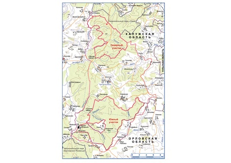 Территория парка включает 3 основных участка: Угорский, Воротынский и Жиздринский, занимающих соответственно 64%, 4% и 32% общей площади парка