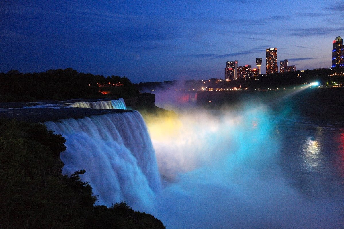 Ниагарский водопад (Niagara Falls), расположенный на границе США и Канады, ежегодно стремятся посетить миллионы путешественников из разных стран. Это целый комплекс водопадов — «Подкова» (еще его называют «Канадским водопадом»), «Американский водопад» и «Фата». Гигантские потоки воды, падающие вниз с пятидесятиметровой высоты, туристы могут увидеть со смотровых площадок, с вертолета или кораблика, курсирующего по реке Ниагара. В разное время суток достопримечательность меняет цвет и объем. Особенно красив водопад ночью — в лучах цветной подсветки. Новые ракурсы Ниагарского водопада – в фотоленте РИА Новости.