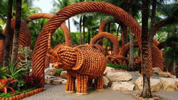Сад горшков. Побывав в этом месте парка, вы получите наглядный урок того, как можно использовать этот утилитарный бытовой предмет для создания малых архитектурных форм. Слоны и обезьяны, корабли викингов и машины, беседки и насекомые – все это сделано из обожженной глины.