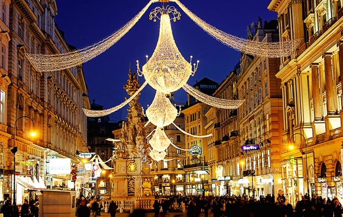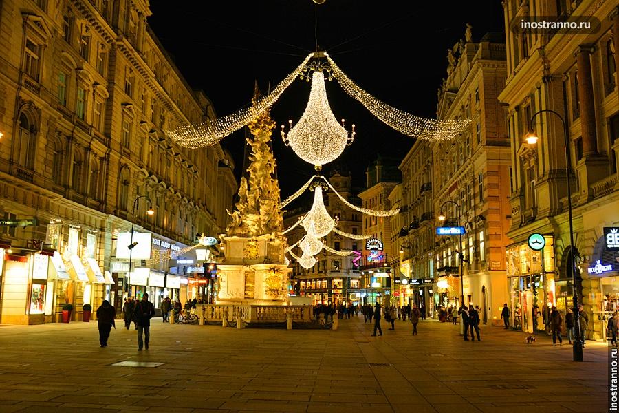 На главной пешеходной улице Graben можно было увидеть люстры — почувствовать себя на балу мог каждый.
