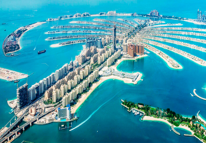 6. Одним из самых удивительных архитектурных достижений ОАЭ являются искусственных островов в Дубае. Пальма Джумейра такая большая, это как мини-город со множеством отелей, домов и даже монорельсовой дорогой. Вы должны увидеть это, чтобы поверить! Остров имеет форму пальмы с раскидистыми ветвями (или листьями).