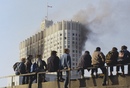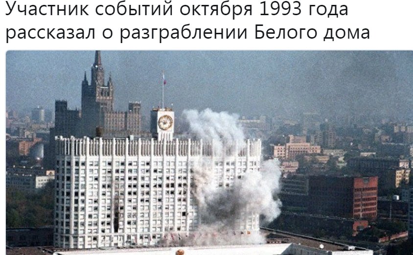 Вчера около 3 часов утра по вашингтонскому времени телеканал CNN показал, как танки стреляют по огромному зданию парламента, которое русские называют своим Белым домом, и зажгли огонь, который горел в течение дня и превратил огромные его участки в черный.