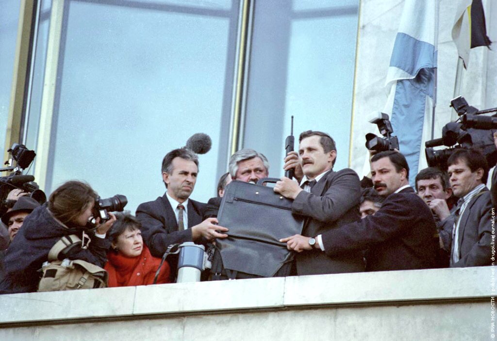 «Что делает нынешний кризис еще хуже, чем кризис 1917 года, так это то, что в отличие от того времени Россия сегодня обладает многочисленным ядерным оружием. А также Украина, Беларусь и Казахстан, которые антиельцинцы хотят насильственно реинтегрировать в новый Советский Союз.