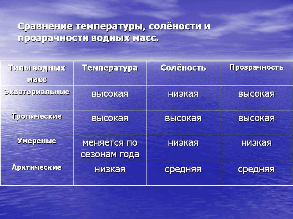 Соленость водных масс в некоторых районах океана выше средней, так как значительная часть испарившейся влаги из-за относительной узости океана переносится ветрами на соседние материки.