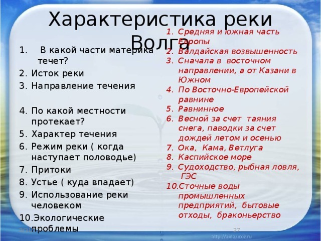 Цель: Составить развернутую характеристику реки, используя различные источники информации.