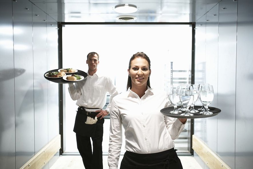 - Завтрак, обед или ужин должны подаваться на подносе, либо на передвижном столике. Поднос следует держать в левой руке. Правая рука официанта должна быть свободна, чтобы открывать, закрывать двери, либо, чтобы переставить какой-либо предмет на подносе или столике.