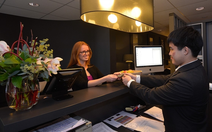 Администратор отеля принимает заказы, регистрирует гостей в отеле и выезжает из него, распределяет номера и ключи и является основным контактным лицом между гостями и персоналом.