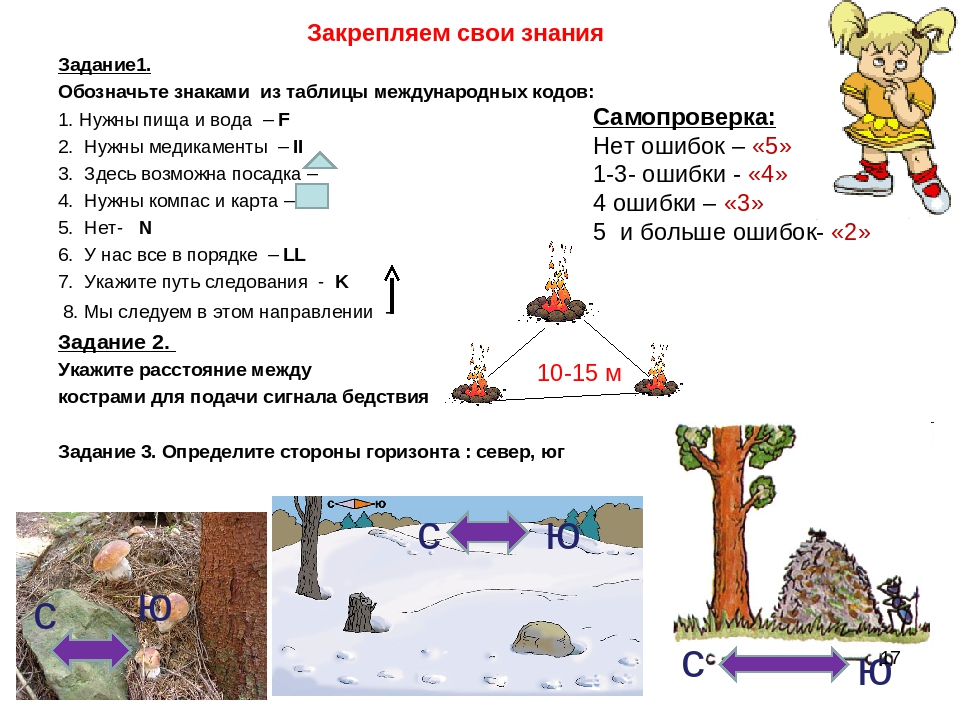 Ориентирование на местности. В детстве нас часто учили ориентироваться на местности и тому, как не заблудиться в лесу. Рассказывали, что мох обычно растет с северной стороны деревьев, муравейники располагаются с юга. Но природа изменчива, и не стоит полагаться на эти признаки, лучше руководствоваться объективными данными. В поиске помогут ваши органы чувств. Присмотритесь. На земле могут быть отпечатки подошв обуви человека. Выяснив направление следов, отправляйтесь по ним. Если заметили линии электропередач, идите вдоль них. Прислушайтесь. Идите в направлении звука воды или шума машин. Добравшись до реки, лучше двигаться вдоль нее по течению. Реки обычно впадают в большие водоемы, а там есть вероятность встретить людей. Принюхайтесь. Если почувствовали дым костра, то надо идти против ветра на запах.