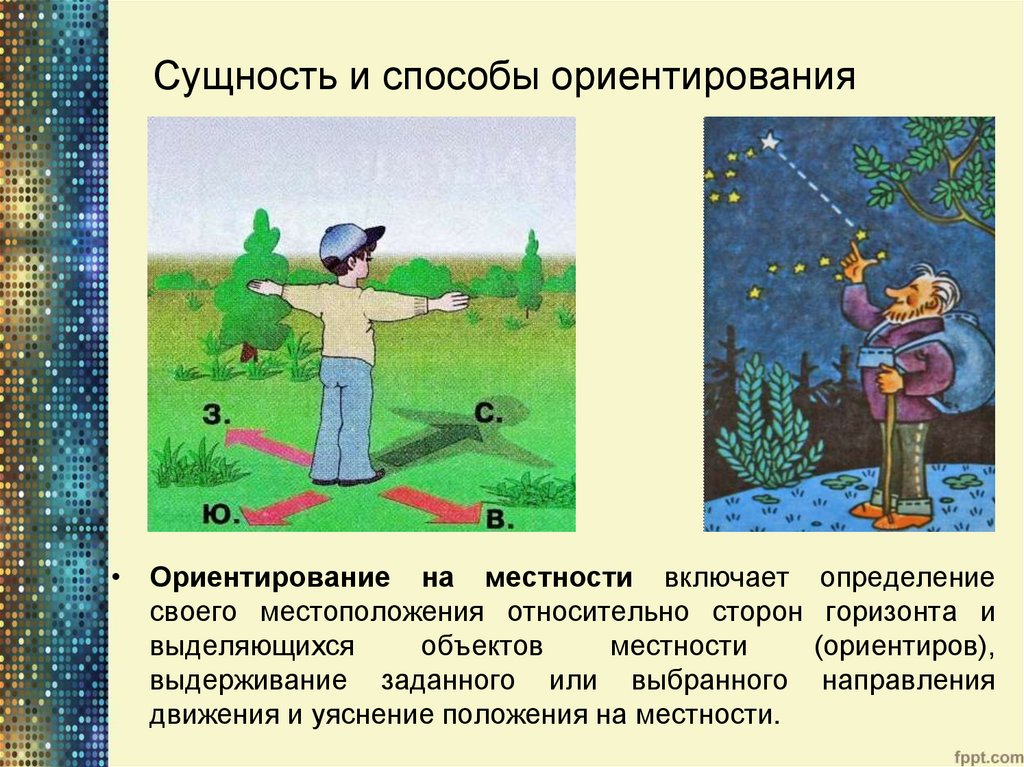 В любом случае, для того чтобы найти дорогу домой, нужно правильно ориентироваться в окружающем пространстве. Это значит — уметь определить стороны горизонта, свое положение по отношению к ближайшим населенным пунктам и выбрать направление движения к ним. Основы этих знаний заложены в школьной программе. Для ориентации в географии обозначают четыре главных направления – север, запад, юг и восток.