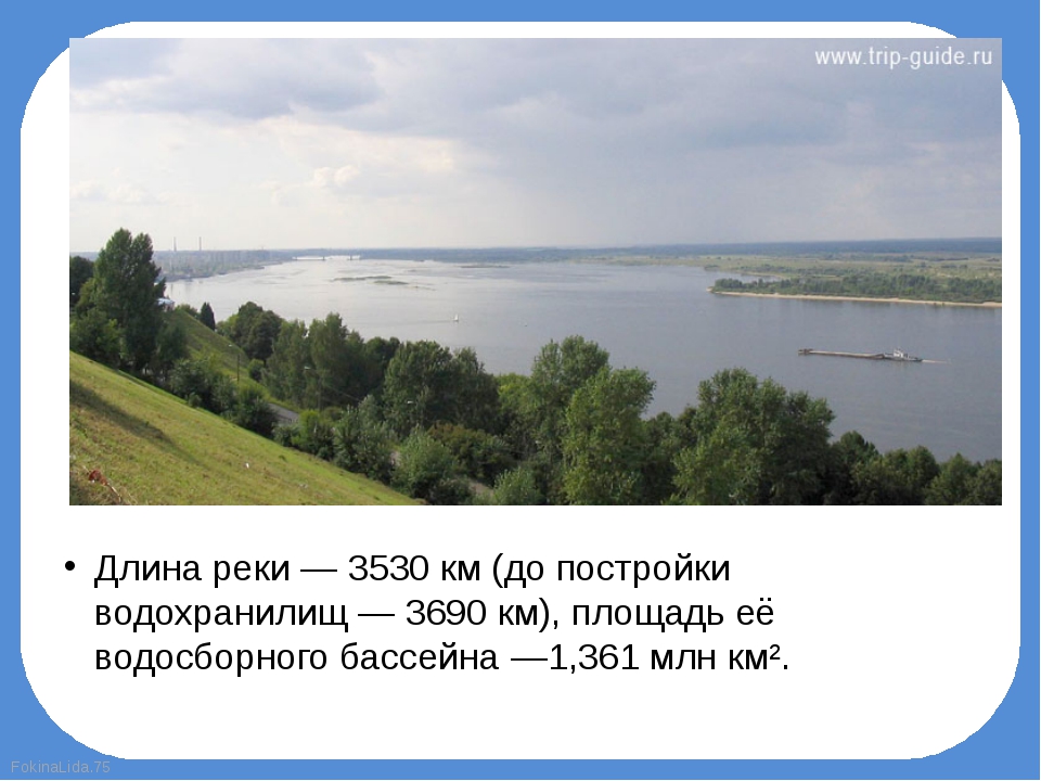 8. Крупнейшие притоки — Кама, Ока, Кострома, Тверца, Шексна