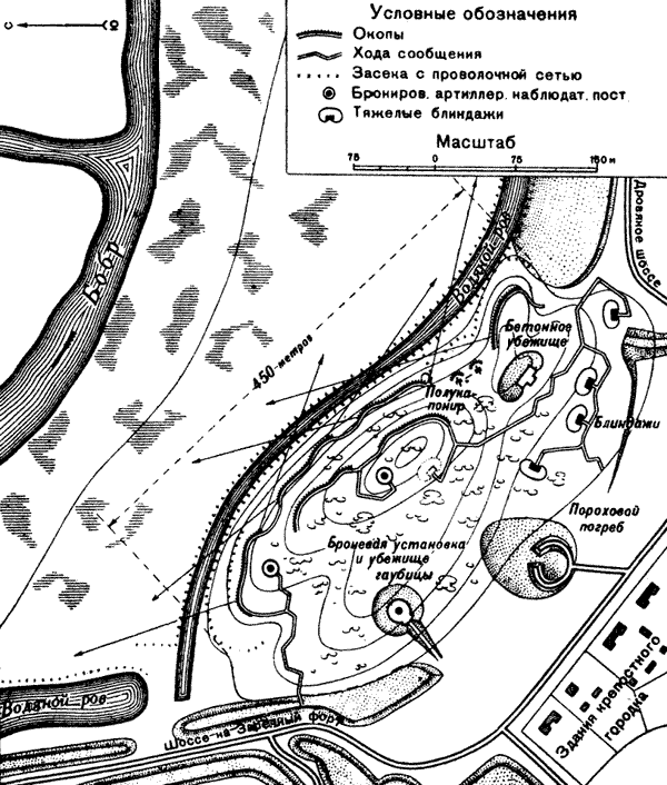 При этом Осовец ни по размерам гарнизона, ни по значению совсем не мог равняться ни с Новогеоргиевском, ни с Ковно, ни с каким-нибудь Перемышлем. Это была добротная, с несколько устаревшими линиями укреплений крепость, перекрывавшая железнодорожный и шоссейный пути на Белосток.