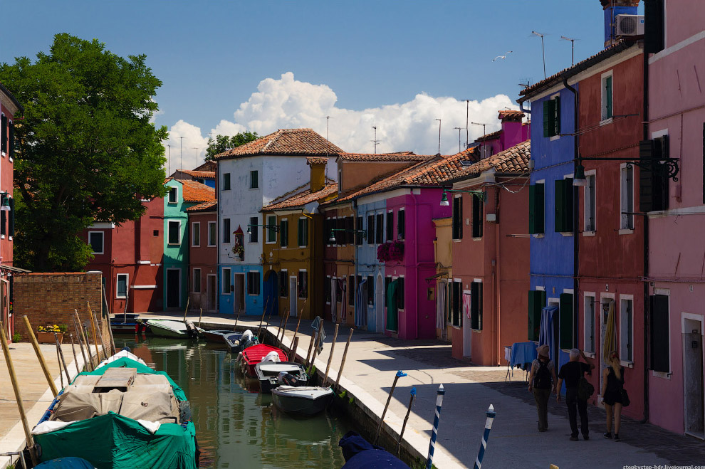С тех пор, как остров стал зарабатывать на туристах, желающих воочию увидеть этот красочный городок, правительство Венеции закрепило за каждым домом определенный цвет.
